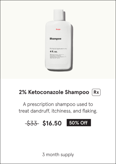 Ketoconazole Shampoo 2% is a prescription medication that has not been approved by the FDA as safe and effective to treat dandruff or hair loss, however, clinical studies have shown promising results for treating dandruff, itching, flakiness, and hair loss. By providing this content, Thirty Madison, Inc. in no way supports or endorses the use of this product for such condition(s). Such a determination must be made by a licensed clinician who may prescribe Ketoconazole Shampoo because in their clinical judgment, use of the product is medically appropriate. Ketoconazole Shampoo may cause side effects that could require immediate medical attention, including allergic reactions like skin rash, itching or hives, swelling of the face, lips, or tongue, pain, tingling, or numbness. Other potential side effects include dry skin, hair loss, hair discoloration or abnormal texture, or skin irritation. If you would like to learn more about Ketoconazole Shampoo, please see the full prescription information here. You are encouraged to report negative side effects to the FDA. Visit MedWatch or call 1-800-FDA-1088.