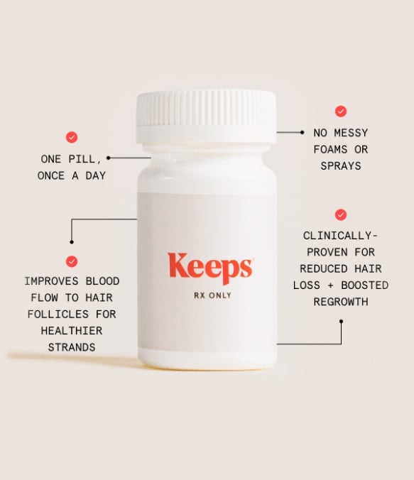 Hair loss caused by male pattern baldness can be treated with two safe and clinically proven formulas—finasteride and minoxidil. Depending on your condition, your medical provider may recommend one or both treatment options. Some studies indicate that taking finasteride and minoxidil in tandem may be the most effective way to combat hair loss. A Keeps provider can help determine which treatment plan is right for you through a quick consultation.